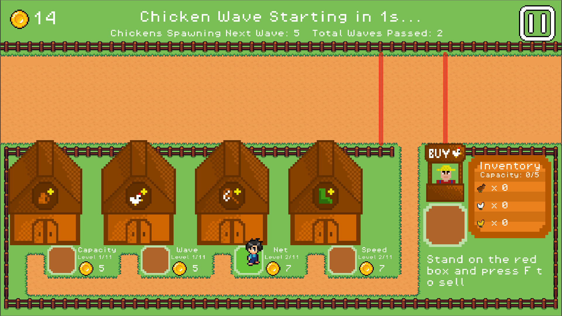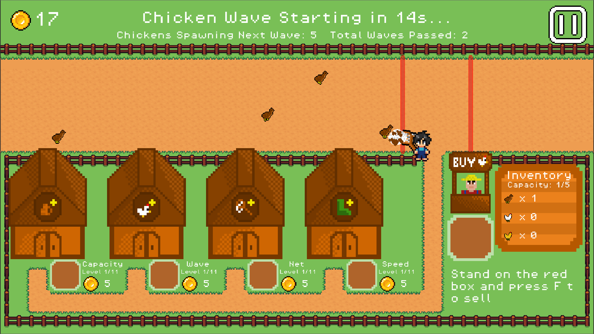 Waves of chickens have escaped from their coop and you are hired by the farmer to catch them. Use your net to catch as many chickens as you can, sell them for coins, and upgrade your abilities to become the ultimate chicken catcher!